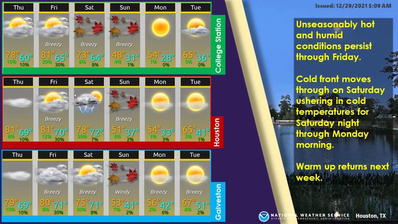 Kingwood36 wrote: Wed Dec 29, 2021 8:30 am High of 54 Monday and a high of 65 on Tuesday...im so sick of these highs not even getting into the 40s..another weak cold front with it only getting cold at night while we're are asleep....next