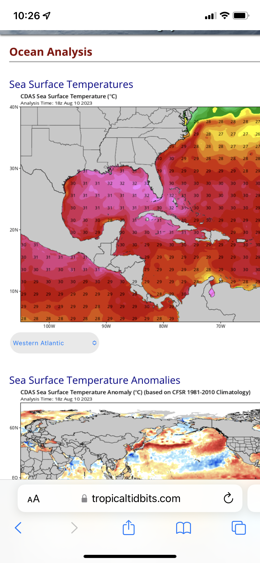 Stratton20 wrote: Sat Aug 12, 2023 8:18 pm Yikes im seeing a few 33 celcius readings starting to show up in the gulf😬 thats about 91-92 degrees