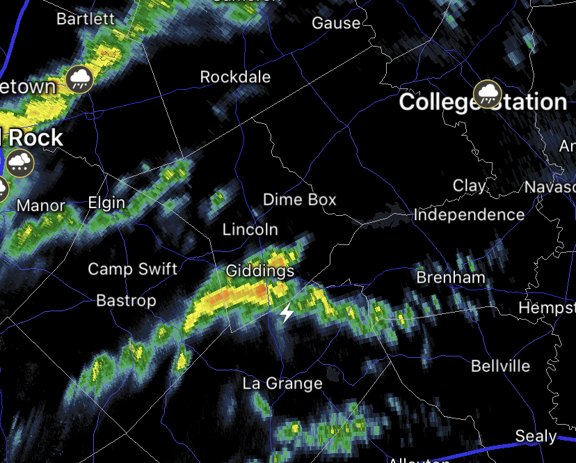 Looks like Giddings might have hit the jackpot! (Image from David Paul’s twitter)Ptarmigan wrote: ↑Sun Feb 14, 2021 9:53 pmThunder snow is a rarity.weatherguy425 wrote: ↑Sun Feb 14, 2021 9:25 pm Some lightning with heavy snow, sleet showers west of Houston. Don’t be surprised if you hear a rumble of thunder or two, tonight!