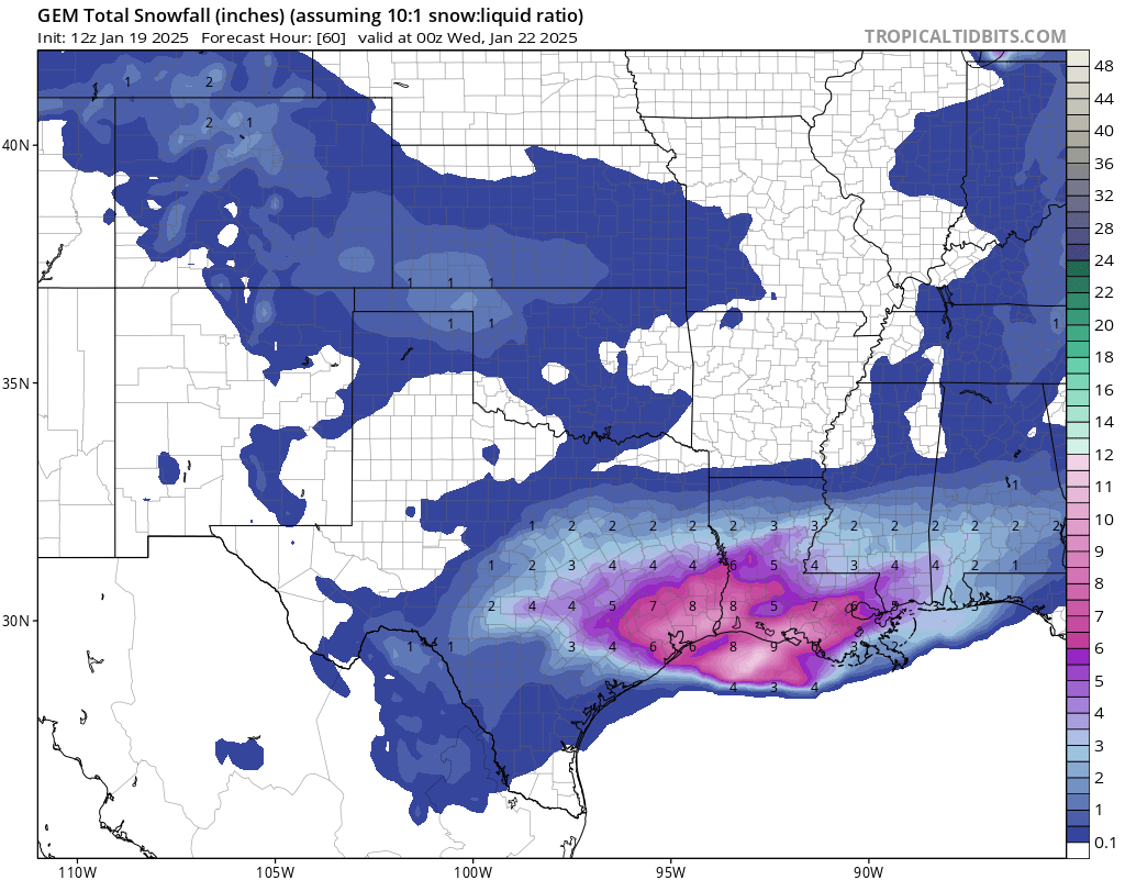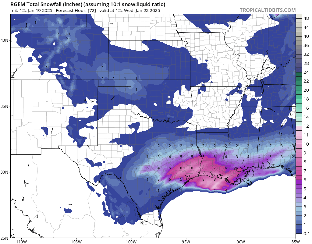 It’s one model and inconsistent with all the globals. We’re getting a lot more than what is depicted in that graphic. GFS, Canadian, and Euro all locked in on 6 inches plus for Houston.