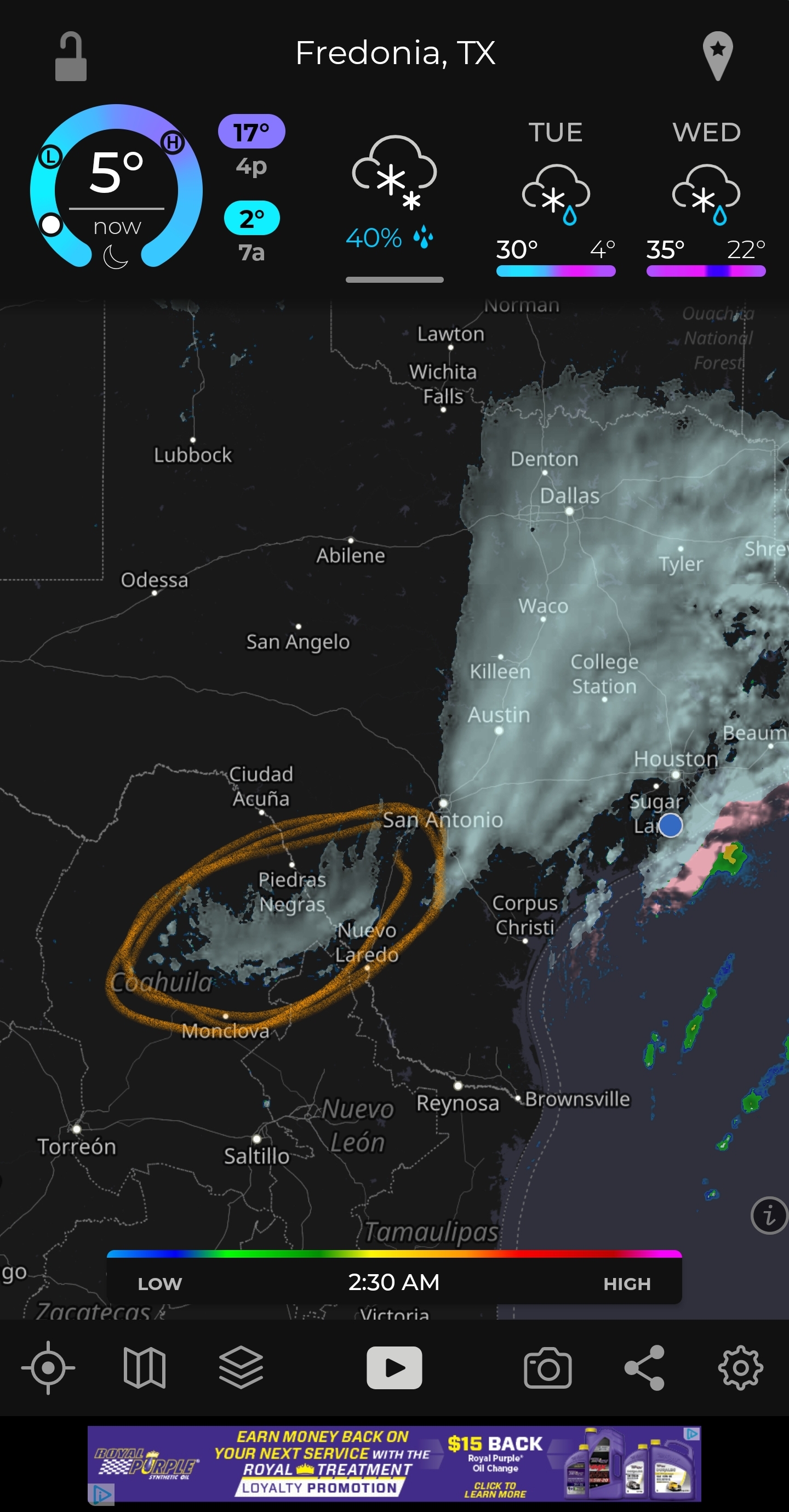 Rolling blackouts have now have wicked us in College Station. We have 4 more hours of snow. Maybe more if the lingering disturbance in Mexico makes it here.