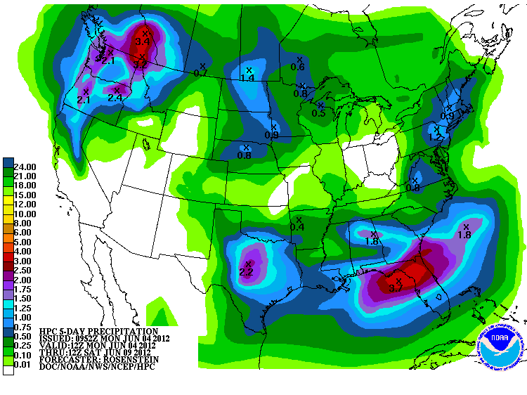 The 12Z Canadian continued the wet scenario and the HPC did recognize the potential in their Model Diagnostic Update. We'll see if the Euro continues the trend for a wet pattern for the next 5-7 days...