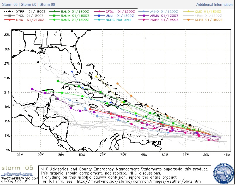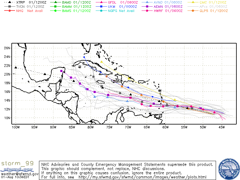 Models are in good agreement with the system reaching the Windward Islands in the 48-60 hour time period or late Friday and then continuing its W to WNW track toward the western Caribbean Sea by the early part of next week. It is very possible that any tropical storm approaching/passing through the Windward Islands may then weaken back into a strong open wave over the central Caribbean Sea.