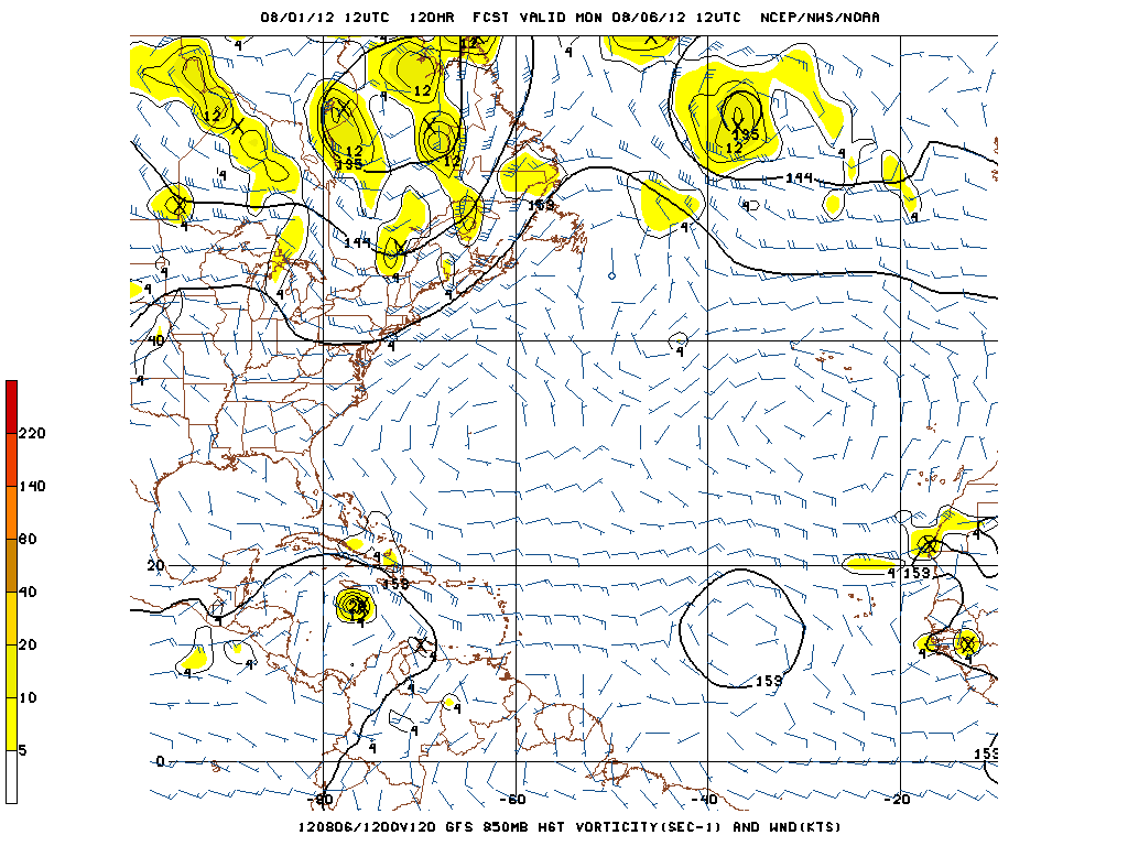 The 12Z GFS continues to advertise 99L will traverse the Caribbean and begin to slow a bit as it nears the W/NW Caribbean S of Jamaica...