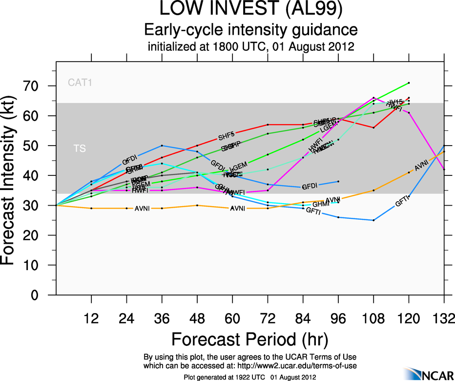 ON...THE INTENSITY FORECAST UNCERTAINTY INCREASES. OUR BEST TWO