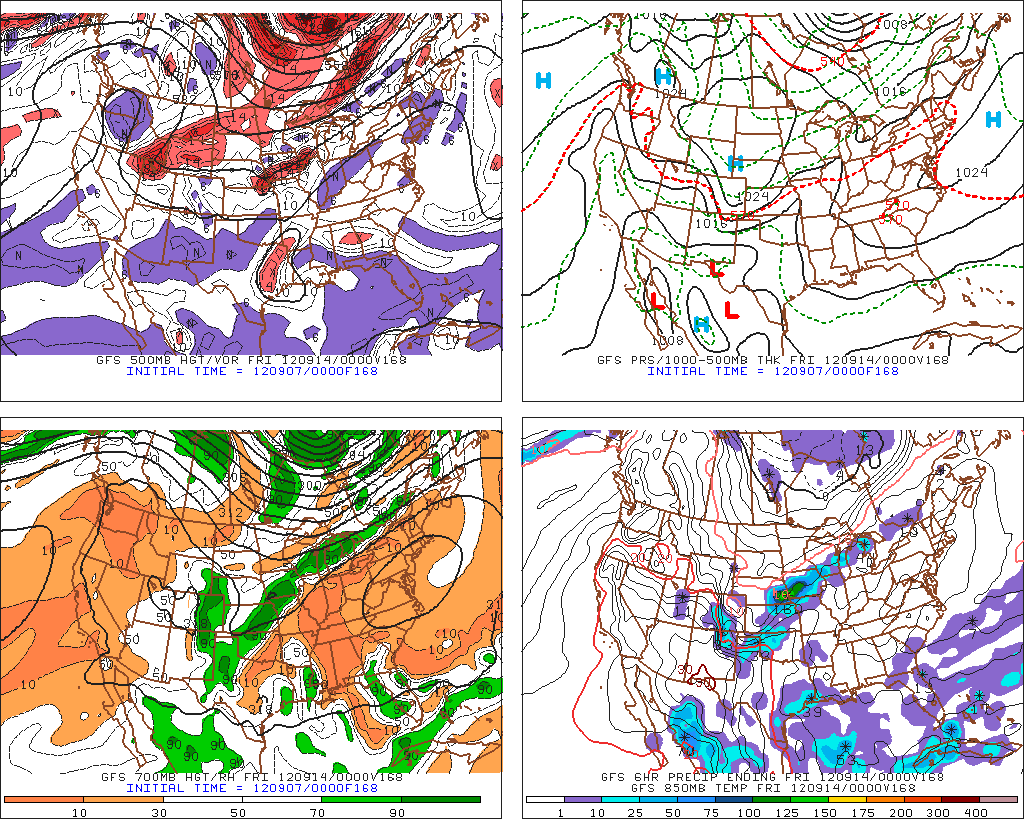 There still remain some differences between the overnight guidance, but the trend is looking a bit more favorable for rain chance increasing Thursday and extending into the weekend. The GFS and Euro are in some what better agreement regarding the potent short wave and mid latitude trough diving SSE into the Eastern US on Friday. A strong 500mb upper low develops over the Ohio Valley and the attending ‘cold front’ drops S into the Lone Star State. The potent short wave drops S into Texas and slowly meanders E providing lift in an unstable air mass with increasing moisture as the Gulf opens with a return flow. The fly in the ointment will be just where this boundary stalls. Another new wrinkle is a potential surface low developing in the Western Gulf that the Canadian, and to a weaker extent, the Euro are ‘sniffing’. The GFS does not show this feature, but does suggest lowering pressures in the Gulf, so that bears watching as well. All in all it does appear that some beneficial rains are ahead and we’ll need to monitor for any potential development in the Gulf. Stalled boundaries and lowering pressures in the Gulf always raise an eyebrow or two when we enter the month of September.