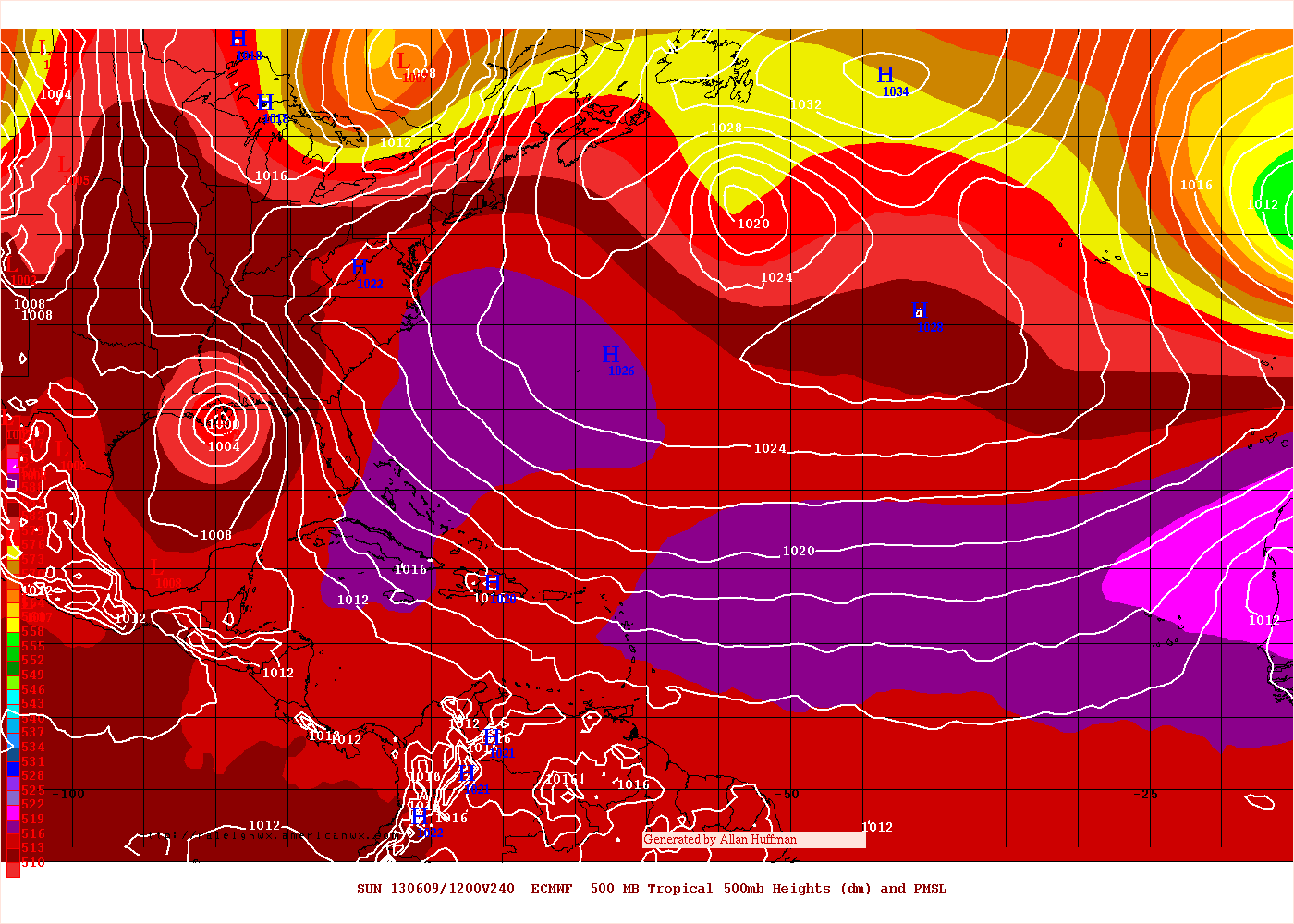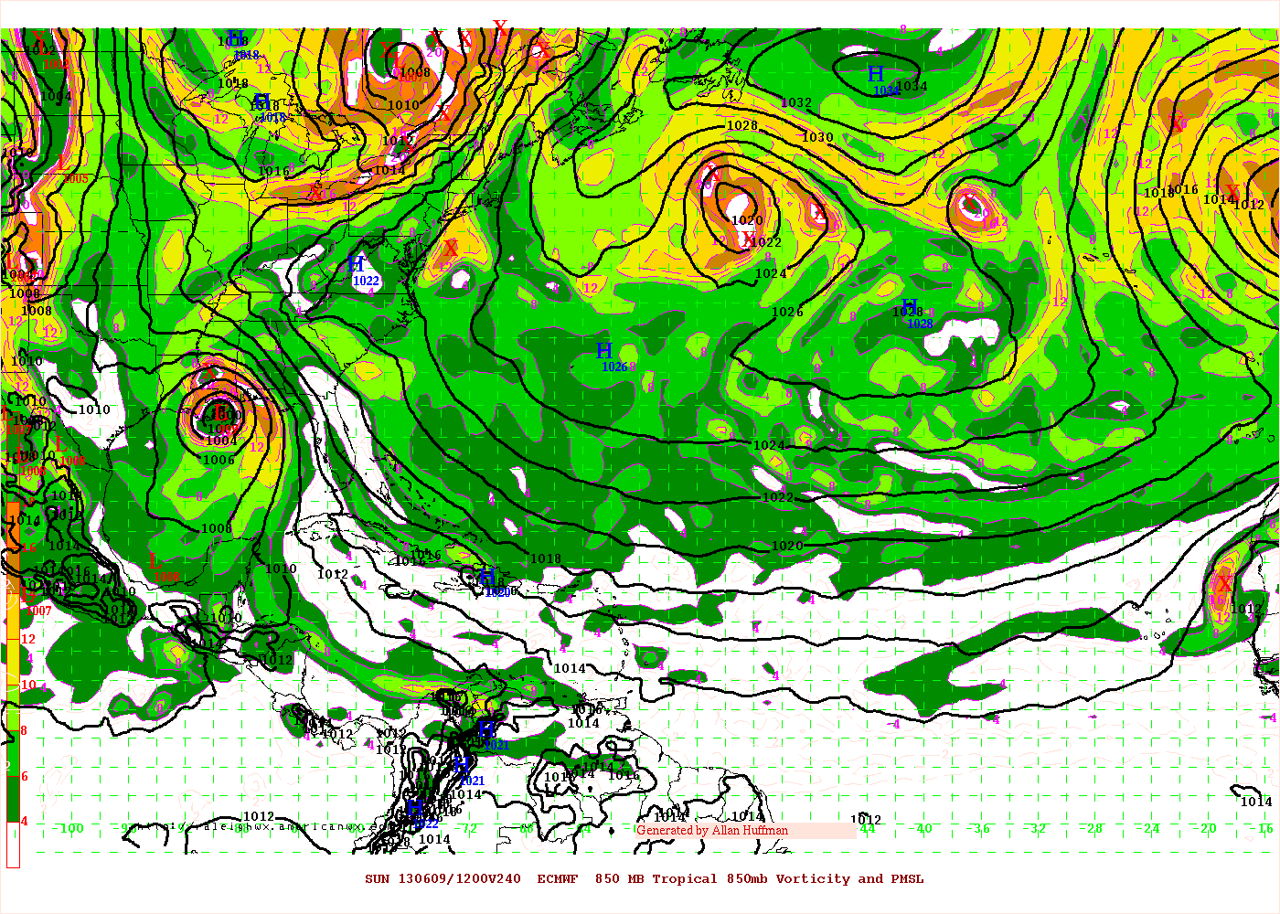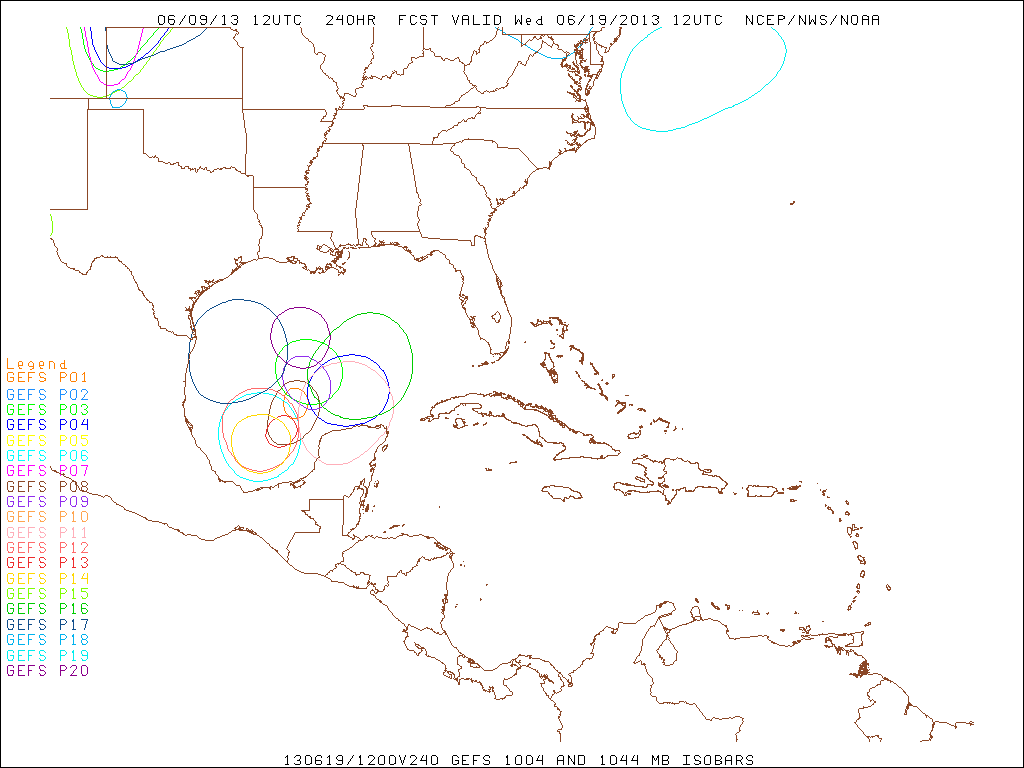 We are beginning to see some hints in the longer range reliable Global and Ensemble guidance suggesting the monsoonal trough will begin to lift N from the Western Caribbean during the later half of the medium range (6-7 days). As the monsoonal trough lift N and W some vorticity or cyclonic spin at the surface is noted to develop and head generally WNW into the Western Gulf beyond the June 17th to 19th timeframe. While this is rather far out in model world, the longer range guidance did do rather well in suggesting Andrea would develop beyond the 192 hour timeframe so it may be worth watching over the next week or so.