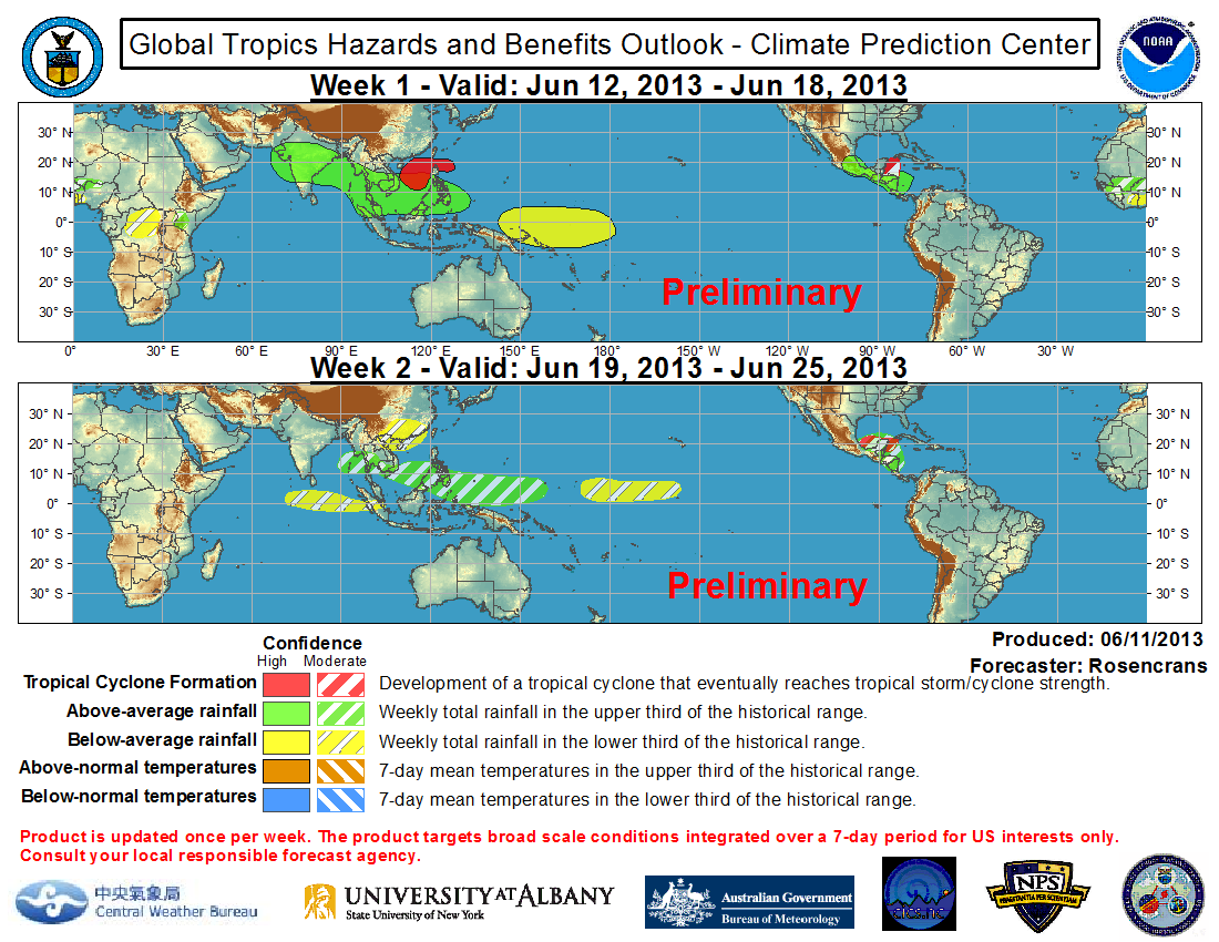 Long range Global models continue to show lowering pressures in the NW Caribbean and SW GOM 8-10 days out along with the pooling of tropical moisture. This is many days out but we could see more tropical development in the days ahead. Take this as a reminder that Hurricane Season 2013 is here and it only takes one. Have your hurricane plan ready just in case its needed later this Summer. I am not so concerned with early season tropical development compared to the Cape Verde storms which are long tracked classic hurricanes. We may see a few this season.