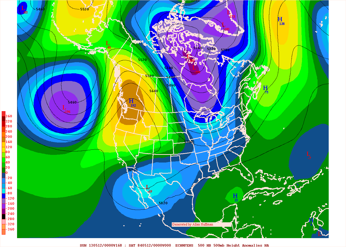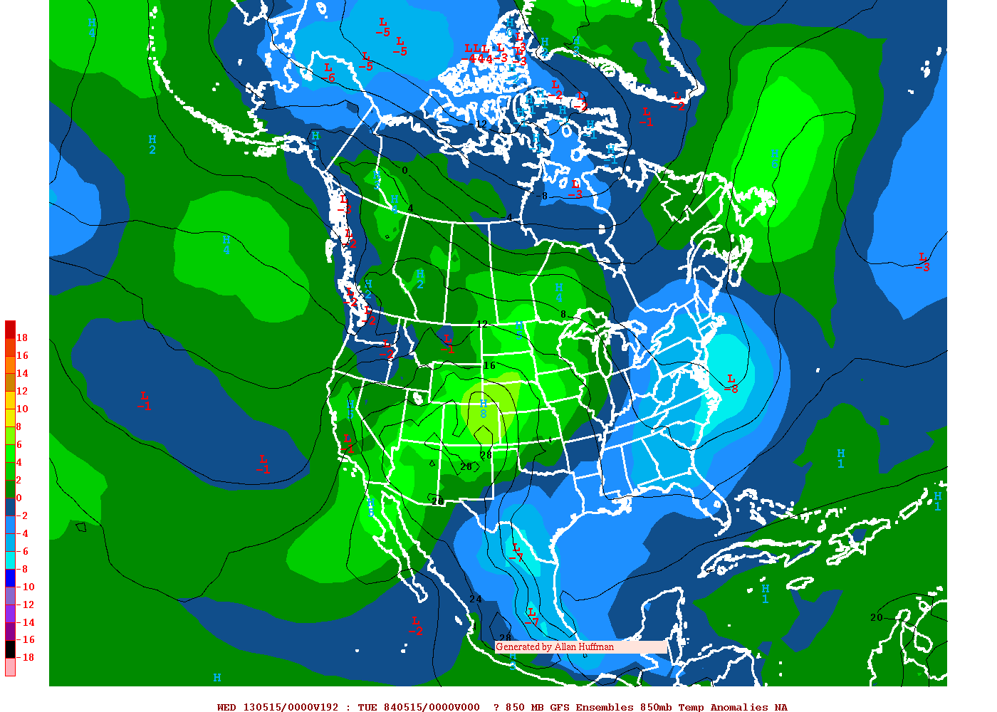 The overnight medium/long range guidance is beginning to advertise a rather strong upper low moving inland along the California Coast next week and traversing rather far S across Arizona and New Mexico toward the end of next week. With a return flow becoming established by next week across our Region and possibly some deep tropical moisture moving NW from the Western Caribbean, there may be a potential for some heavy rainfall and stronger storms developing near the 10th, +/- a couple of days. There are indications that below normal temps will continue into the mid May time frame as that slowly moving storm system passes off to the E. We will see.