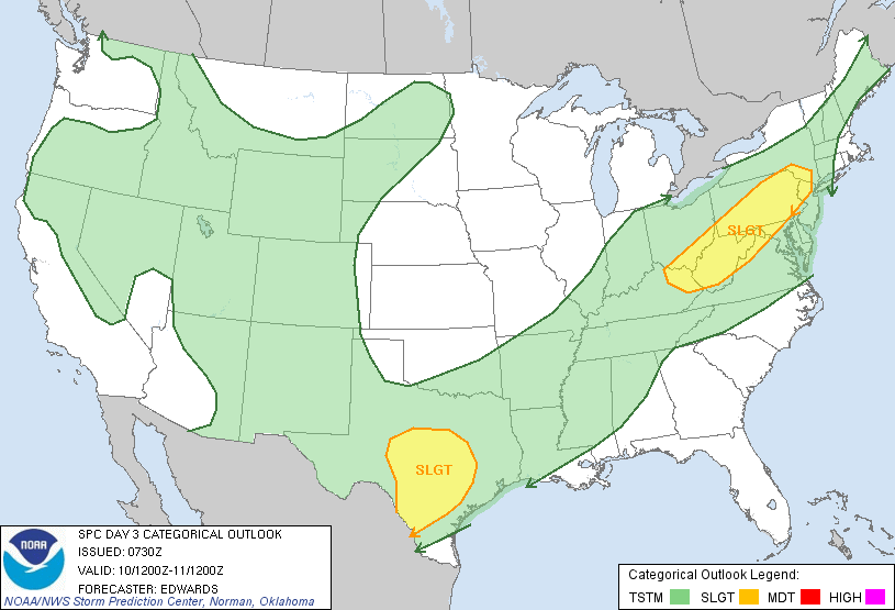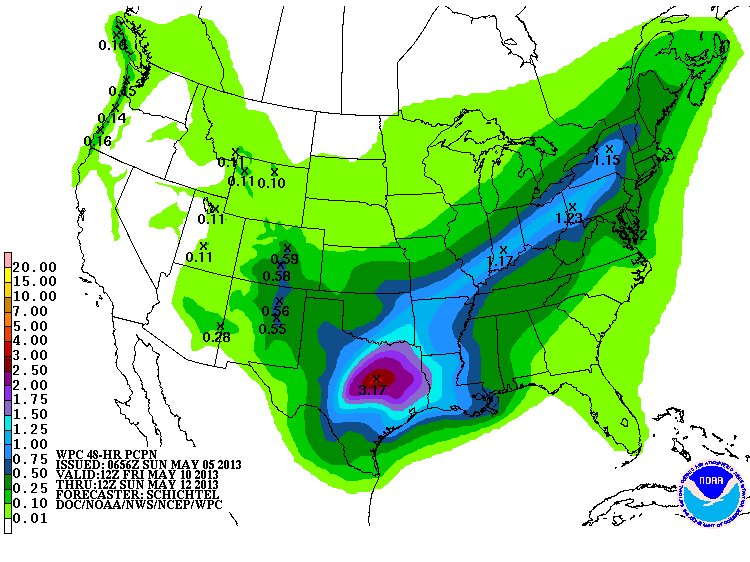 It does appear that severe storms will begin to develop across potions of Central Texas and translate E over the next couple of days. While the best chance for large hail and damaging winds associated with those severe storms appear to be near the Austin/San Antonio area, we will need to monitor just where the outflow boundaries set up over the next several days as moisture increases off the Gulf and moves inland setting the stage for a potential heavy rainfall event due to training storms from the Middle Texas Coast on E into Louisiana through Saturday.