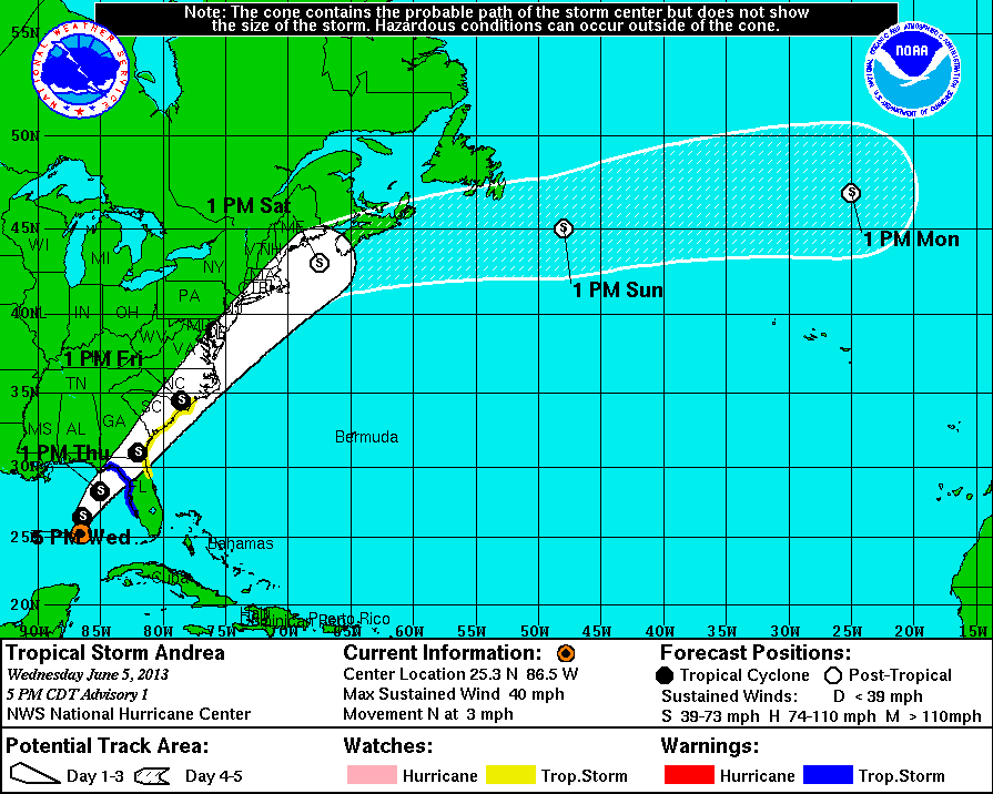 TROPICAL STORM ANDREA WITHIN THE NEXT HOUR OR SO. THIS SYSTEM HAS A