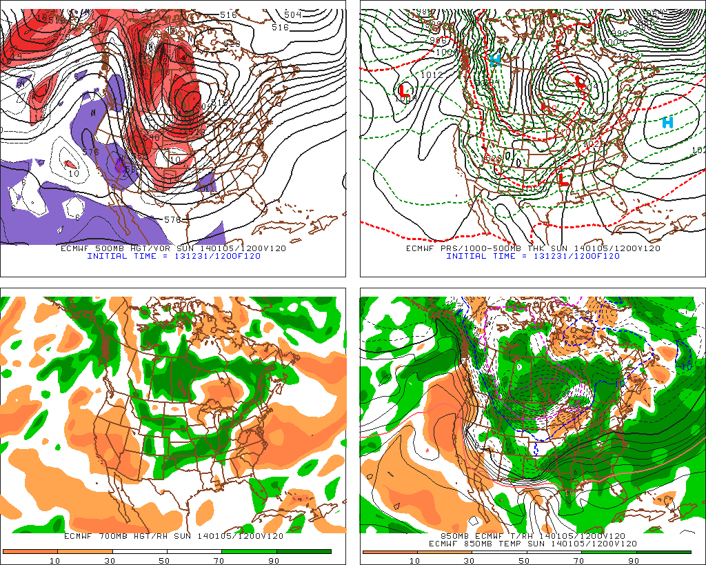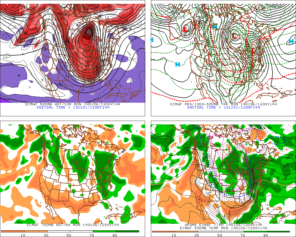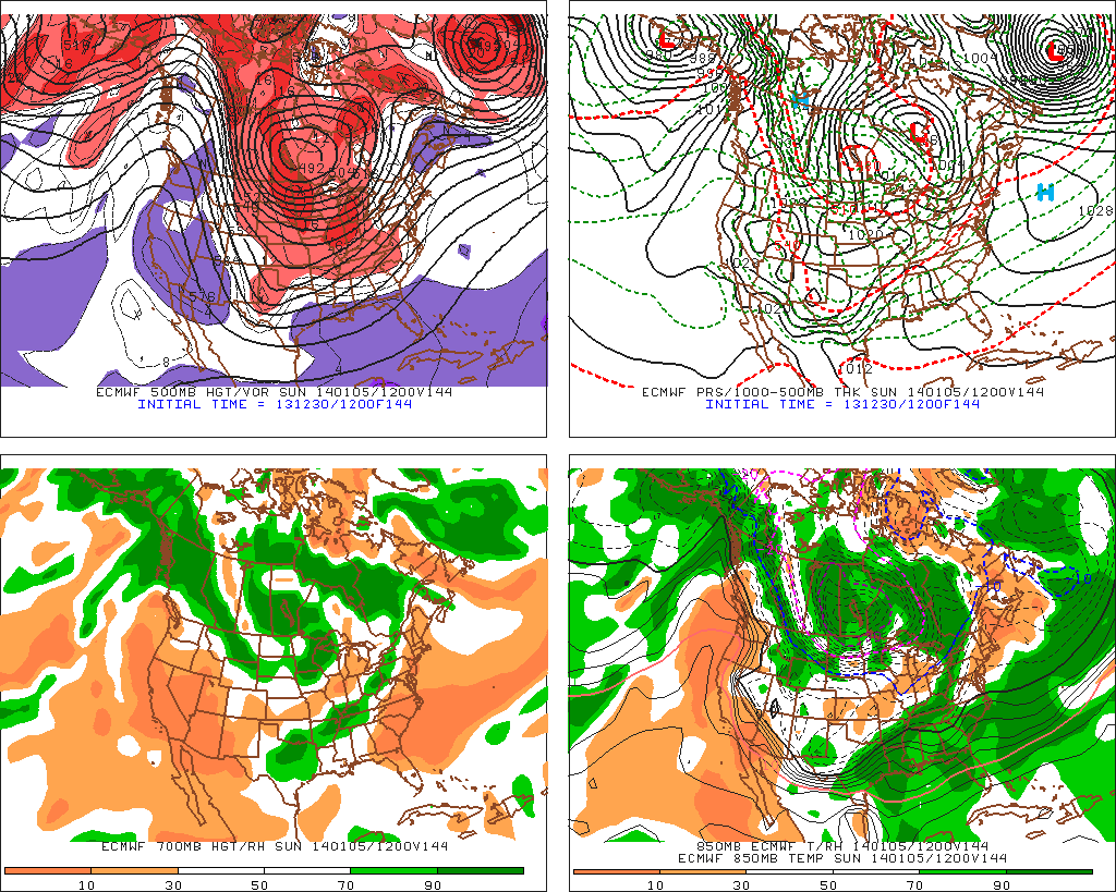The coldest air still looks to be to our NE, but that will make little difference because it looks to be very chilly here in our Region as well. The cold looks to linger well into the mid January time frame with multiple short wave/upper air disturbances in the northerly flow dropping S and bringing re enforcing cold fronts and precip chances every few days with a progressive pattern of a parade of storms rotating around the Polar Vortex and a strong Gulf of Alaska High Pressure Ridge holding steady allowing multiple 1050-1060mb Arctic High pressure cells to drop into the Inter Mountain West and Plains. It may be time to escape to the S Pacific or the Florida Keys for those looking for warmer weather.