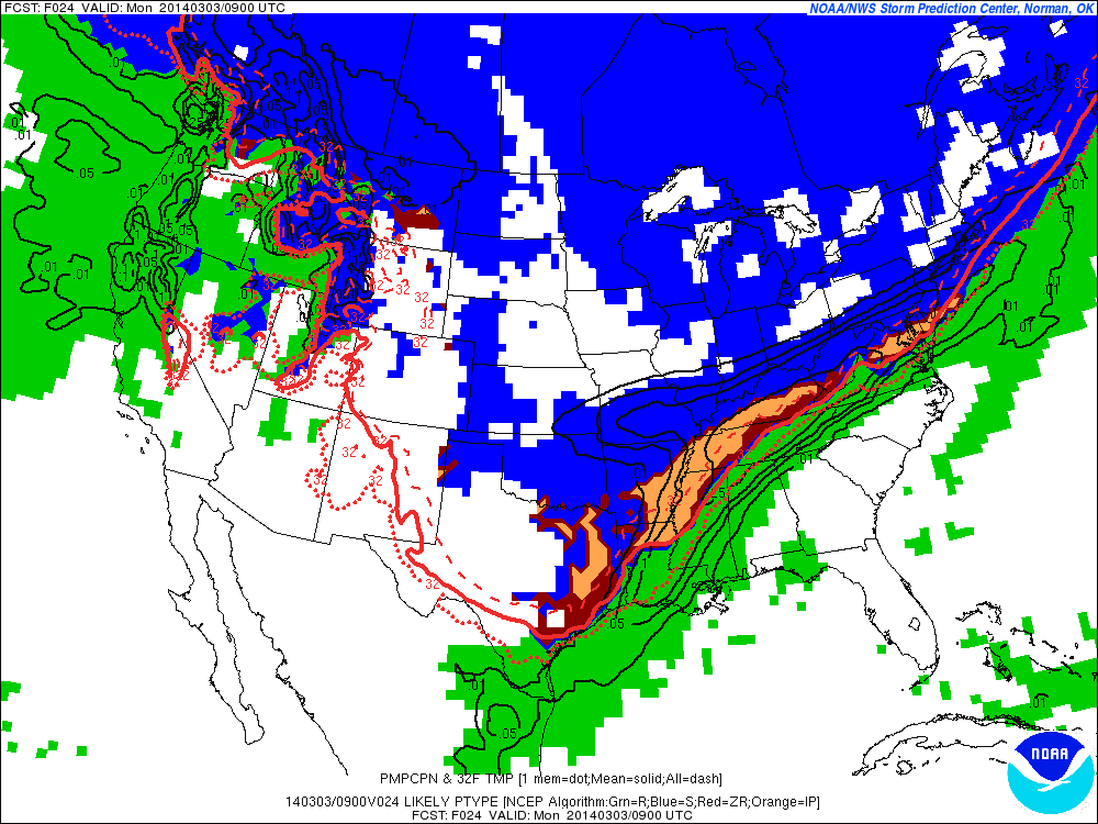 The SPC 09Z SREF continues to be very suggestive of a freezing rain/sleet potential across our Region early tomorrow morning and again mainly across Central Texas early Tuesday morning.