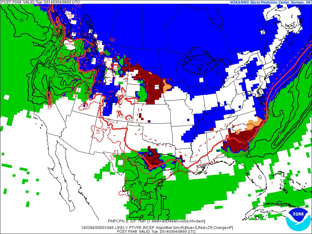 The concern is growing for the potential of a rather significant freezing rain/sleet event ~vs~ a severe weather event as the trends this morning via the the shorter term meso guidance. Those shorter term models are suggesting the shallow Arctic air mass arrives quicker and undercuts the warm layer at the surface therefore suggesting a quickly moving line of showers and storms with the potential of a bit of post frontal precip in the form of ice across portions of the Northern Hill Country extending E into the ArkLaTex Region and on E.