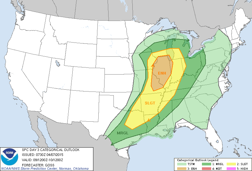 On this travel day to National Tropical Weather Conference, 3 days of active severe weather begin across large portions of the US. Texas will also be threatened with severe weather during the next 2 days. The severe weather threat will extend across N Central, N and NE TX on Thursday and then across S, SW , Central, S Central and SE TX on Friday. A wet and stormy weekend shaping up for SE TX with the flooding potential increasing Sunday into Monday with additional storm development and heavy rain with the second trough.
