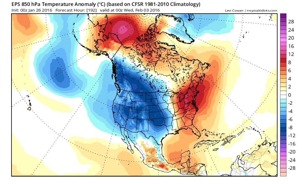 Bastardi's nearly beside himself.srainhoutx wrote:The 12Z guidance continues to advertise a powerful Southern Rockies/Plains storm system early to mid next week. It's looking like a good possibility of much colder air filtering down from Canada arriving Tuesday with temperatures for morning lows in the upper 20's/low 30's likely Thursday and Friday mornings next week. The extended range ensembles are advertising some mighty chilly air settling across North America, East of the Continental Divide around the 9th/11th of February timeframe. There are increasing chances of a Polar Vortex split during that time period suggesting the ' coldest air' across the Northern Hemisphere may be on our side of the World. We will see.