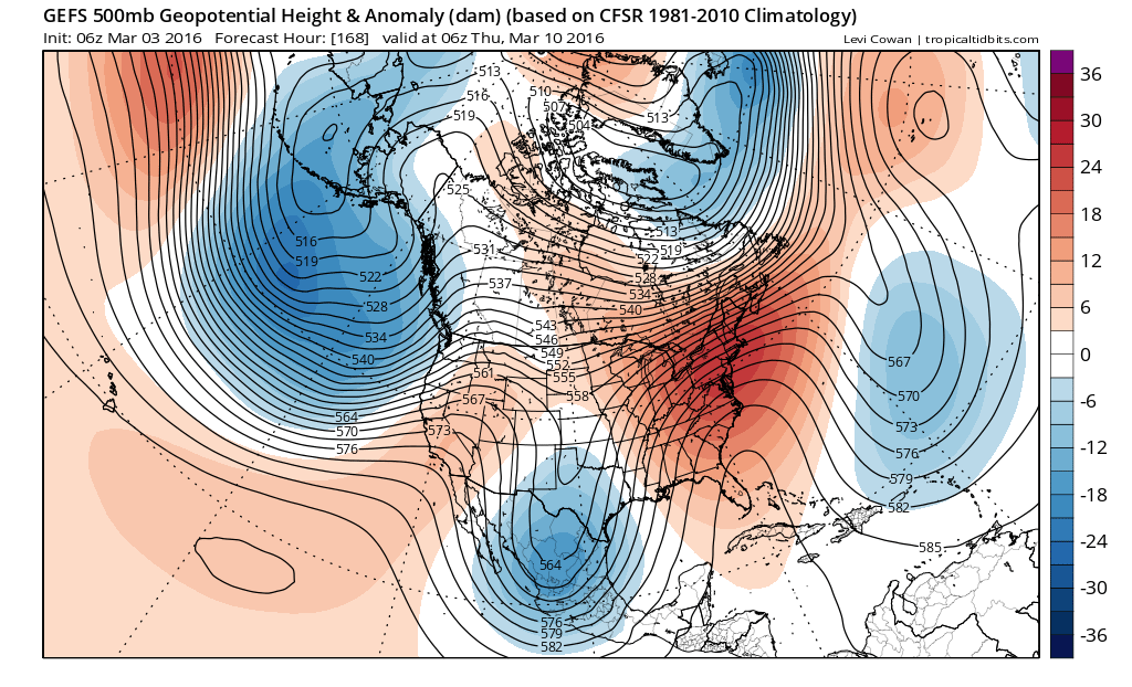 Looks like we will have some interesting weather to follow next week. Typically a cutoff slow meandering upper low in March with a deep digging upper trough that extends well into Mexico spells trouble with a heavy rainfall potential and the possibility of repeated strong to severe storms. The cold front never really clears our area and with a Coastal low potential, I would not be surprise to see rainfall totals increase across SE/East Texas into Arkansas and Louisiana.