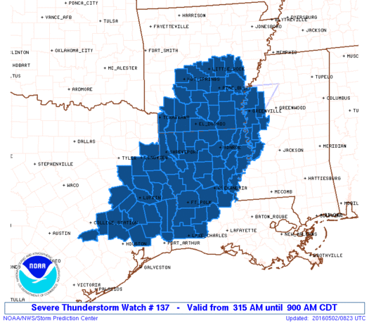 Severe Thunderstorm Watch remains in effect until 9:00 generally from Montgomery County on NE. Approaching jet streak from the West and a stronger front pushing SE over Texas could fire additional storms today.