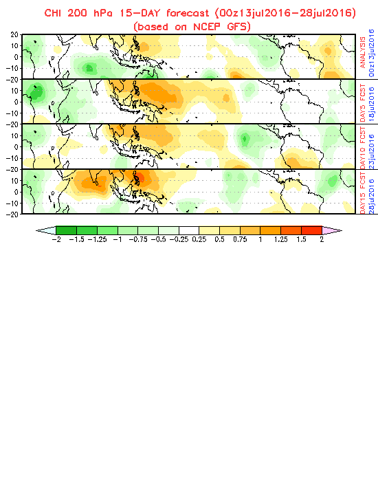 The Madden Julian Oscillation 200mb velocity schemes do suggest conducive conditions across Africa and the Indian Ocean where convective tropical waves organize and begin their trek West over Africa. The computer models may be 'sniffing' these enhanced conditions, so next week as we end July attention turns to our East. Tis that time of year folks...