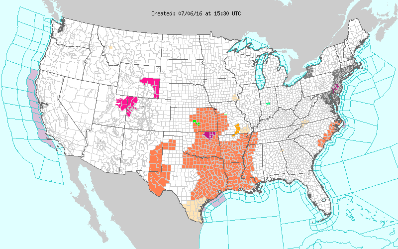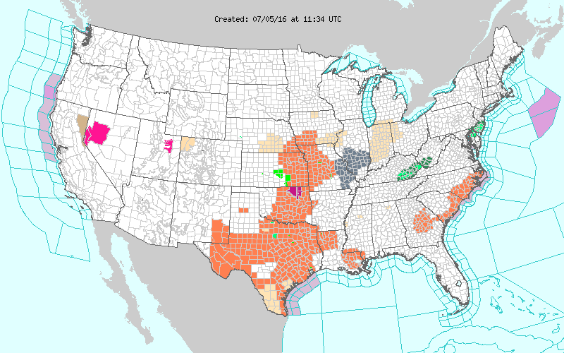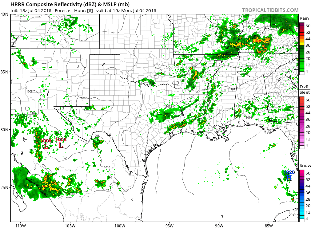 Overnight convective complex in the Dallas/Ft Worth area dropped a record 1.87 inches of rainfall at DFW and the outflow boundary continues to slowly sag SE. The 13Z HRRR (High Resolution Rapid Refresh) Meso Model is indicating the possibility of some Weather Fireworks as the boundary near SE Texas later this afternoon/evening during peak heating. A Heat Advisory has been issued through tomorrow, so make sure to stay hydrated out there and watch the skies toward the North in case Thunderstorms to attempt to organize as folks head out to the Public Fireworks displays.