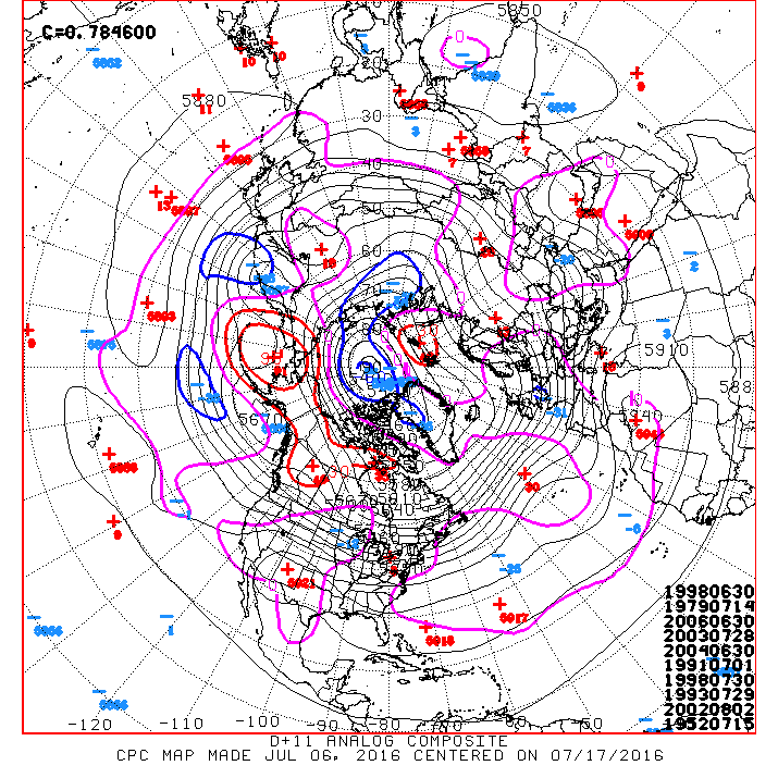 The afternoon Update Climate Prediction Center Day 8 to 14 Outlook suggests hot temperatures will continue with increasing rainfall chances, particularly across the Eastern half of Texas into Louisiana. Interestingly, the top Day 11+ Analog year is 1998 which was when the last Super El Nino was waning and that infamous 1979 Analog continues as #2 top best fit in the North American Pattern.