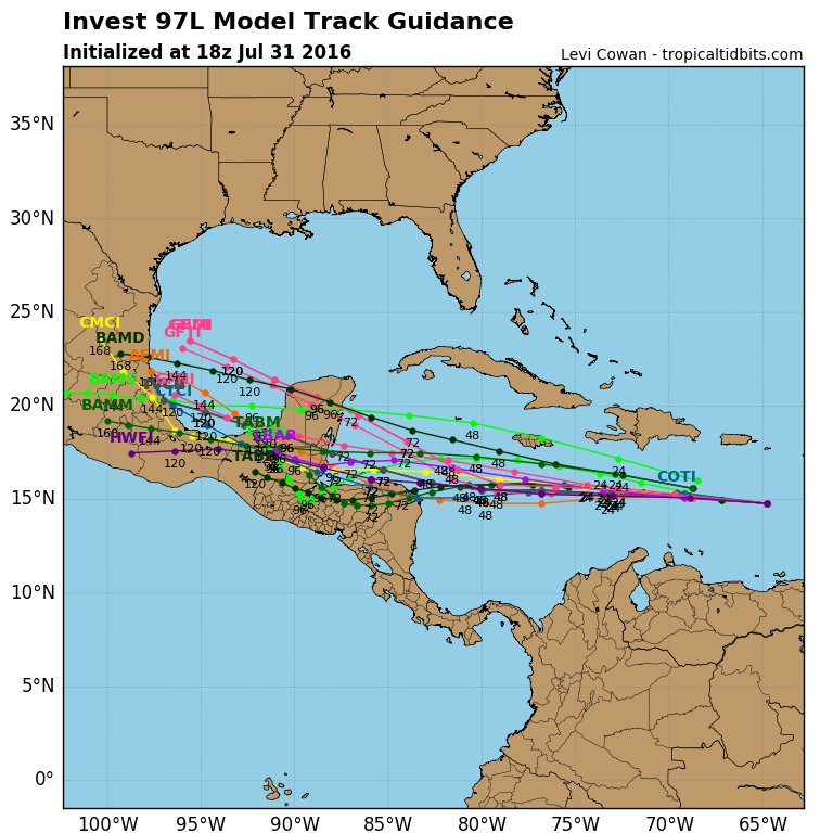 Worth noting that the 18Z ATCF position for 97L is about 200 km too far south. Model initialization points a bit off