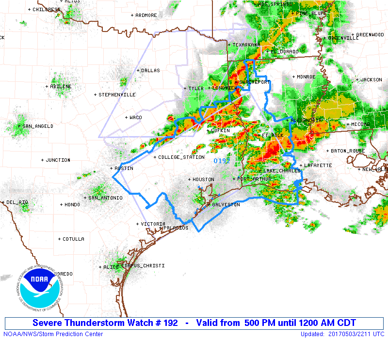 Tornado Watch in affect for portions of SE Texas, SW and South Central Louisiana until 5:00 PM CDT