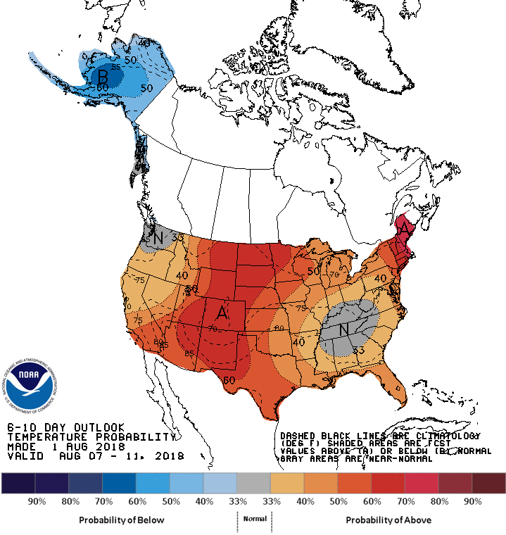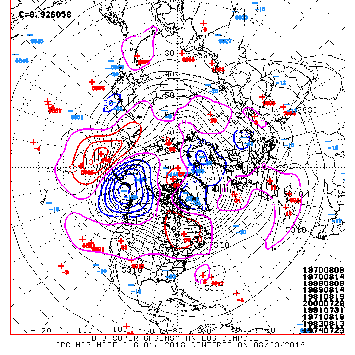 The afternoon guidance suggests we are likely to settle into a typical and potentially unsettled pattern regime as the weekend arrives. A return flow off the Gulf with embedded disturbances dropping into our Region combined with increasing moisture values nearing 2 inches continuing into next week may provide some relief with clouds and increasing shower/storm chances. The afternoon Updated Day 6 to 10 Outlook from the Climate Prediction Center reflect those possibilities. I also don't particularly like seeing Mid August 1983 showing up as an analog with a deep Western trough ahead.