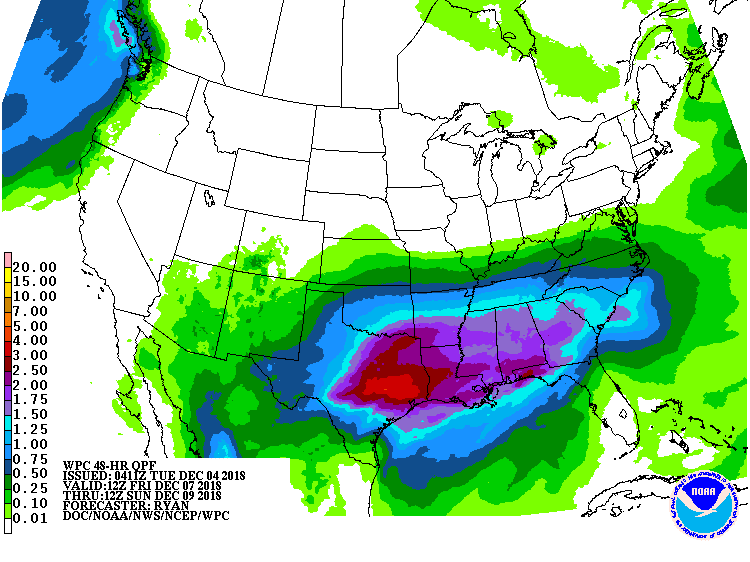 The afternoon computer guidance continue a theme that started last week of a potentially wet and stormy late workweek into next weekend. The general idea via the GFS, FV3 GFS (new GFS), Canadian and European models suggest areas from the I-35 Corridor to SE and E Texas into Western Louisiana may see a general 2 to 4 inches of rain with isolated higher totals nearing 6+ inches where heavier storms may train. In the cold sector, the trend today has slipped the wintry mischief a tad S suggesting the Panhandle into portions of N Central Texas and extending on East across the Northern portions of the Gulf Coast States into possibly Atlanta and the Carolinas. The surface low track as of today suggest a Northern Mexico across SE Texas and near the Northern Gulf Coast into Western Florida and Southern Georgia. It is still too soon to know exact deals beyond 3 days, but the trends continue suggest a very Stormy late work week/early next weekend weather event.