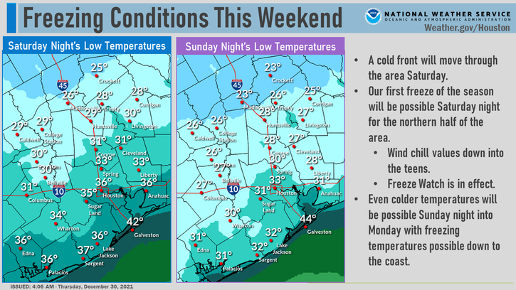 Potential 50°F+ drop in temperature on Saturday in CLL...and even colder Monday am.