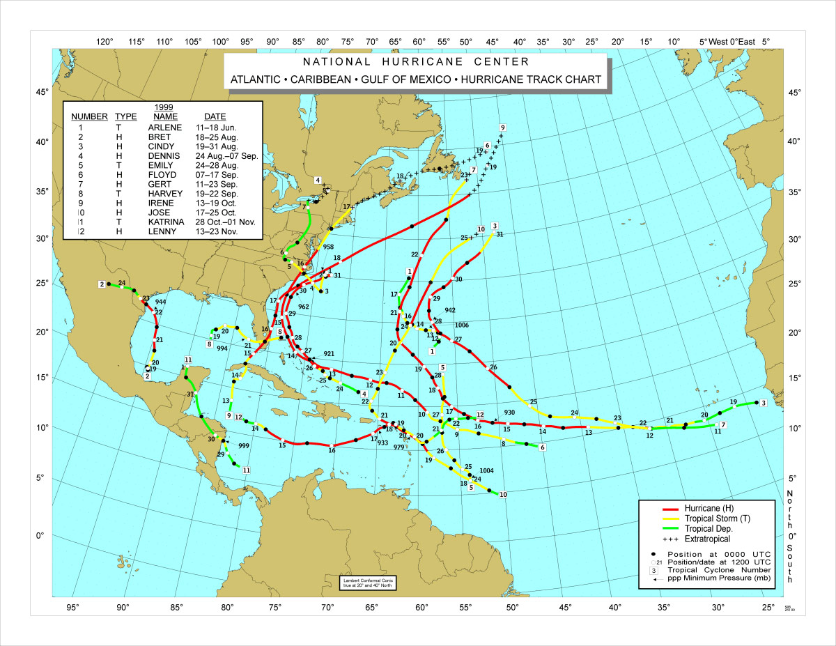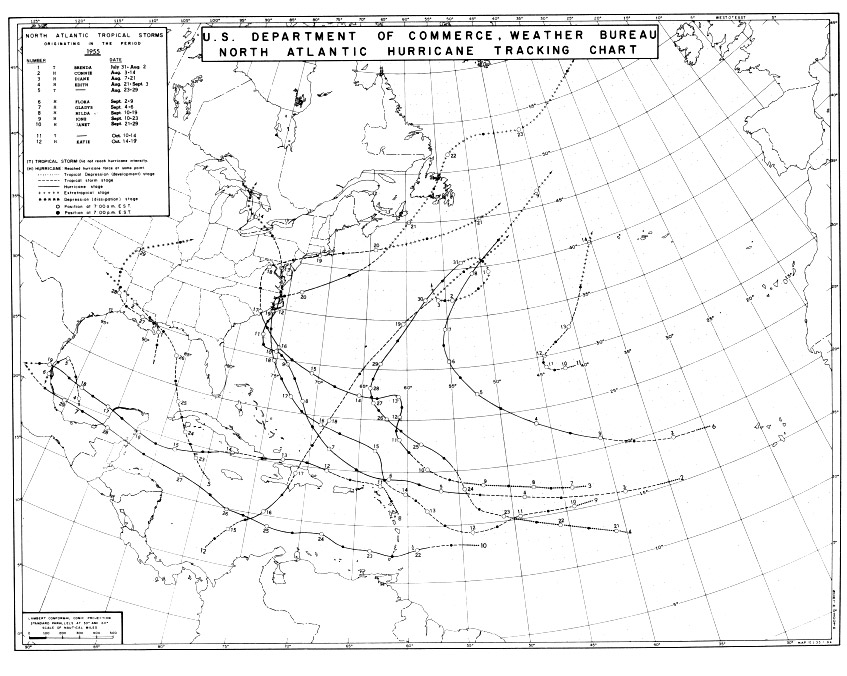 An examination of the data reveals a general track pattern that is common in the analog years. The pattern appears to be one set that moves across the NE Caribbean then heads for the Bahamas and the Carolinas. The second path is similar to start with, but continues westward toward the Yucatan Channel then WNW toward either Mexico or south Texas.
