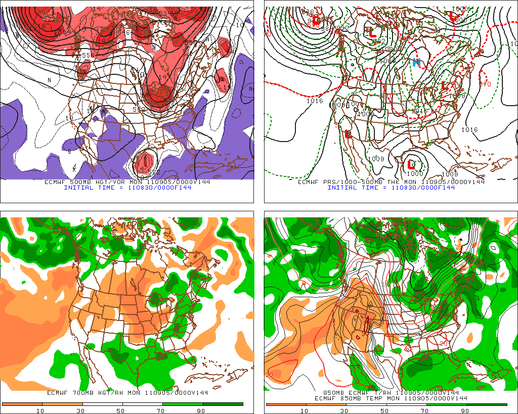 The 00Z GFS, Euro and UKMET suggest a big slug of tropical moisture heading toward the LA and TX. While the models are slowing development until later in the weekend/Labor Day, they do suggest increase rain chances and develop a closed low. The GFS suggests a low off the S/SW LA Coast meandering W and S along the Middle/Upper TX Coast by Monday into Tuesday, while the Euro closes off a low S of SE TX heading S and W to near offshore of Corpus next Tuesday that eventually comes ashore near Brownsville/NE MX...