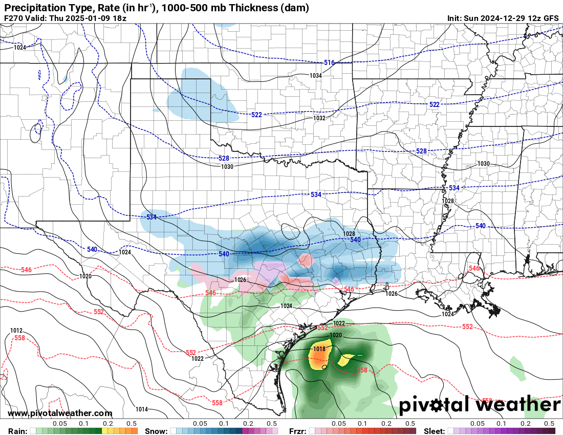 Not necessarily frozen in general, but for snow we need that 540 line further south.Brazoriatx979 wrote: ↑Sun Dec 29, 2024 11:09 amSo the 540 line has to be below us to get snow? Or just anything frozen in general?Cpv17 wrote: ↑Sun Dec 29, 2024 11:05 amYeah, on that particular run the 540 line isn’t far enough south for us.Brazoriatx979 wrote: ↑Sun Dec 29, 2024 11:02 am