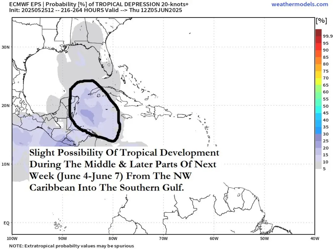 Yep, ensemble support has increased today.Stratton20 wrote: ↑Tue May 27, 2025 6:19 pm Forst week of june and beyond could get a little interesting in the western caribbean and or gulf , nice boost from the MJO could help to spark something in that time frame, worth watching