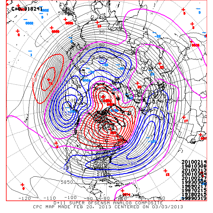 Some impressive analogs showing up on the CPC Super Ensemble 500mb charts for late February/early March...