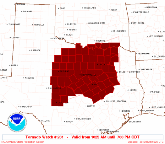 Tornado Watch coming for portions of Central/N/NE Texas until 7:00 PM CDT