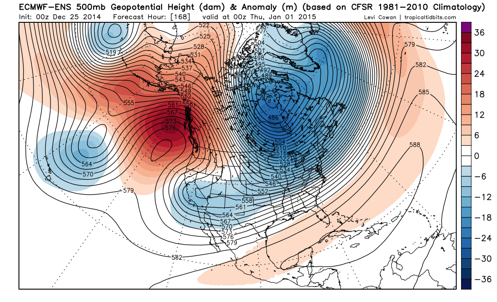 The 12Z Euro is certainly not a warm look with several 1049mb+ Highs building into the front range of the Colorado Rockies extending NW into Idaho on New Year's Eve.