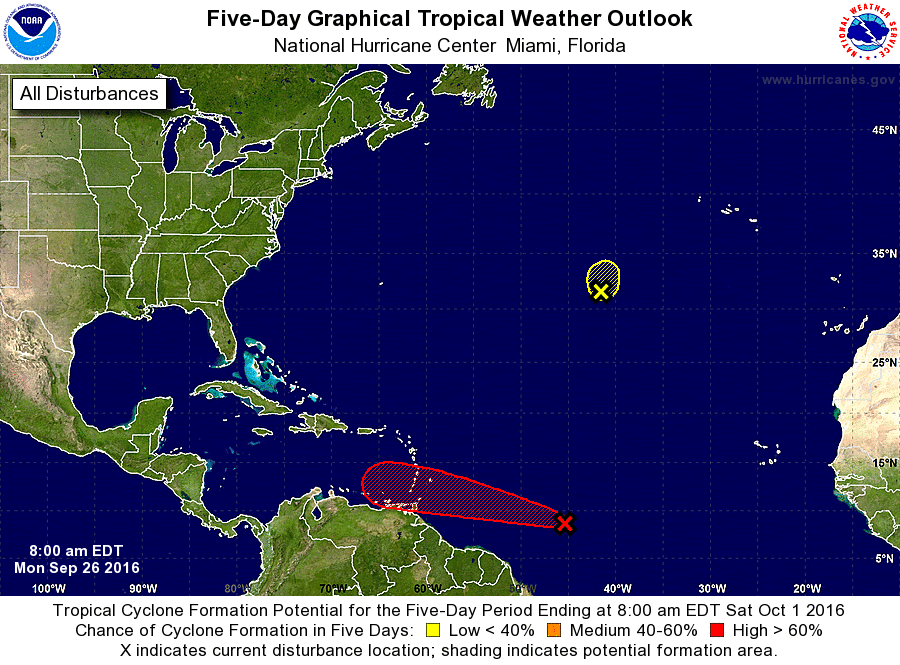 A broad area of low pressure 1100 miles east of the Windward Islands is gradually becoming better organized and there is a high potential (90%) that the system will develop into a tropical depression over the next 5 days as it moves generally westward toward the eastern Caribbean Sea. This system is currently located very low in latitude and conditions downstream over the Caribbean Sea are forecast to be favorable for development. One should remember at this time range to be cautious of model guidance as wild swings between runs and models are likely. At this point there looks to be the potential for a fairly significant tropical system in the Caribbean Sea late this week.