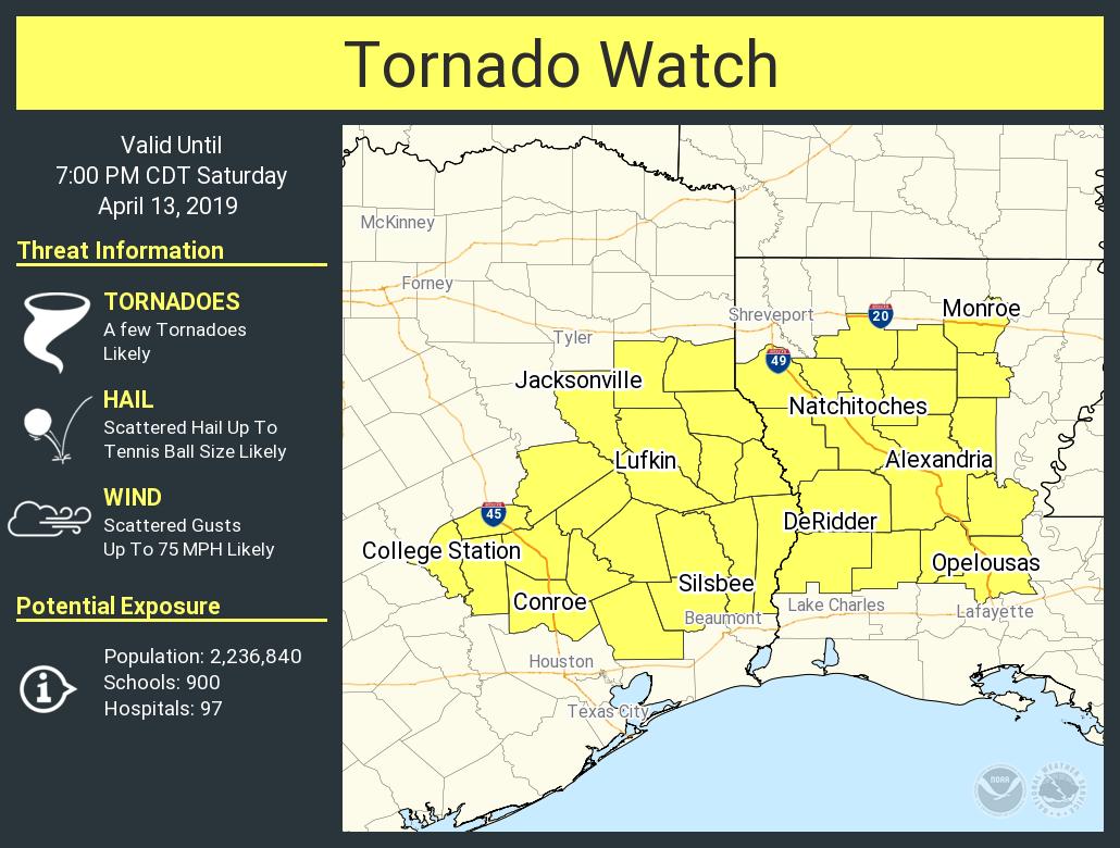 Tornado Watch hoisted for portions of SE Texas. The Tornado Watch does not include Harris County at this time. This Tornado Watch is in effect until 7:00 PM CDT