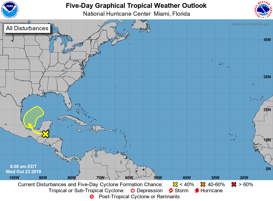 A tropical disturbance over central America will move into the SW Gulf of Mexico on Thursday where conditions may be favorable for a brief tropical system to forms. NHC current gives the system a 20% chance of development before a strong cold front moves off the TX coast Friday or Saturday. Some of the moisture associated with this feature may get drawn NNE along the TX coast ahead of the Friday cold front helping to enhance rainfall amounts.