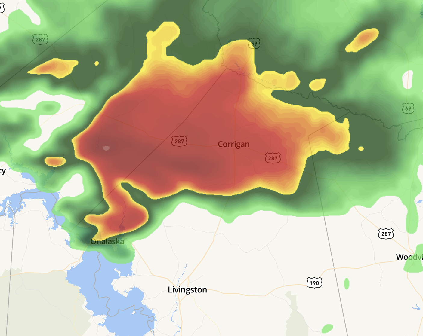 The hook on that storm near Onalaska is insane. Yikes! That’s like something you’d see in Oklahoma or something.
