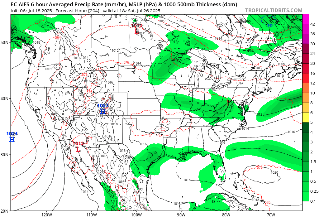 Not really seeing any signs of a persistent ridge for us in the near-future. This summer has been one of weaknesses, which could end up being problematic as we head towards peak hurricane season.Stratton20 wrote: ↑Sun Jul 20, 2025 8:06 pm Fingers crossed the GFS is correct, it keeps a persistent weakness over se texas, underneath the monster heat ridge over the central texas, it keeps that weakness in place even in the long term, decent chance for daily thunderstorms