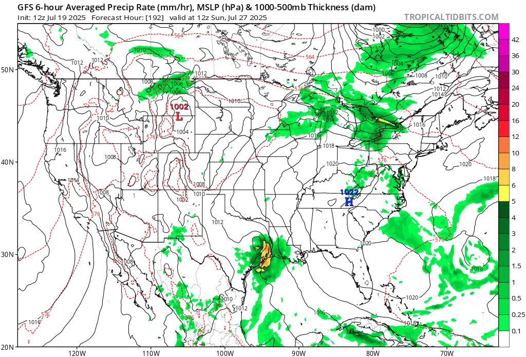 I haven't seen one either. More easterlies.captainbarbossa19 wrote: ↑Sun Jul 20, 2025 9:03 pmNot really seeing any signs of a persistent ridge for us in the near-future. This summer has been one of weaknesses, which could end up being problematic as we head towards peak hurricane season.Stratton20 wrote: ↑Sun Jul 20, 2025 8:06 pm Fingers crossed the GFS is correct, it keeps a persistent weakness over se texas, underneath the monster heat ridge over the central texas, it keeps that weakness in place even in the long term, decent chance for daily thunderstorms