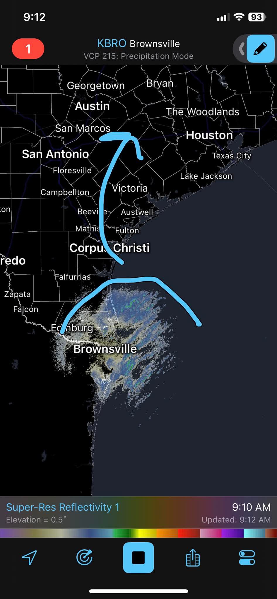 I'm seeing light snow, sleet, and freezing rain returns already just west of Kingsville?