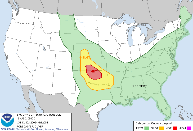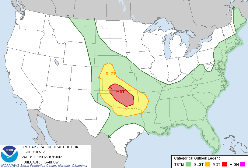 For those following the Moderate Risk tomorrow across the the Southern Plains, the SPC has expanded the Risk to include most of Oklahoma...