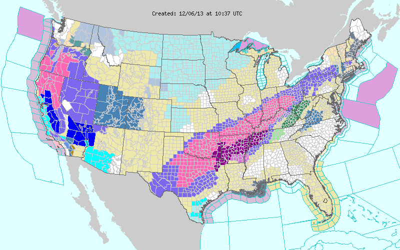 A major Winter Storm is impacting our Region this morning and will continue to bring wintry weather with a variety of precipitation in the form of very cold rain, freezing rain and drizzle, sleet and even some snow across much of the Lone Star State extending well to our W into Southern California and on E into the Mid Atlantic States.