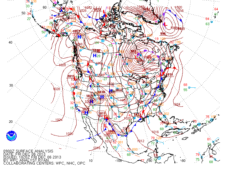 A full latitude trough extends from Eastern Alaska and the Canadian Prairies straight South into Mexico and Texas. Embedded short wave (Upper air disturbances) continue to ride S along the West Coast of California into the base of the trough and tap abundant tropical moisture from the Eastern Pacific. This tropical connection has led to a SW flow over Mexico and Texas where surface temperatures are near or below freezing while a warmer layer above 1000 feet up to about 5000 feet continues to spread across the Region.