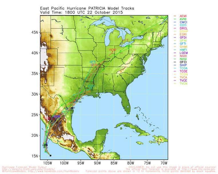 Will not go into much additional detail than that as there is still some uncertainty on exactly how intense the remains of Patricia will be when they arrive into TX and how this helps to develop and interact with the coastal low, but as seen below (there is not much spread in the model tracks).