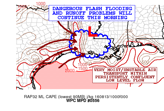 Prolific rainfall event over southern Louisiana along and south of a “tropical” low pressure system has resulted in 24-hr storm totals of 15-22 inches with an isolated max of 27.47 inches near Brownfields, LA. Dangerous flash flood event continues to develop and shift westward along I-10 and the Louisiana coast with strong low level WSW confluent flow over SE TX and the upper TX coast feeding a near continuous shield of very heavy rainfall and significant training bands. Hourly rainfall rates of 2-4 inches have been observed under these “feeder” bands. Center of mid level low appears to be located over C LA with a surface reflection over SC/SE LA. Massive rain shield continues to favor the SW flank of this system as has been the case for the last 2-3 days.