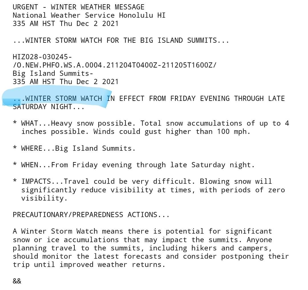 Kingwood36 wrote: Thu Dec 02, 2021 8:03 pm You know the weather is messed up when Hawaii has a winter storm watch !